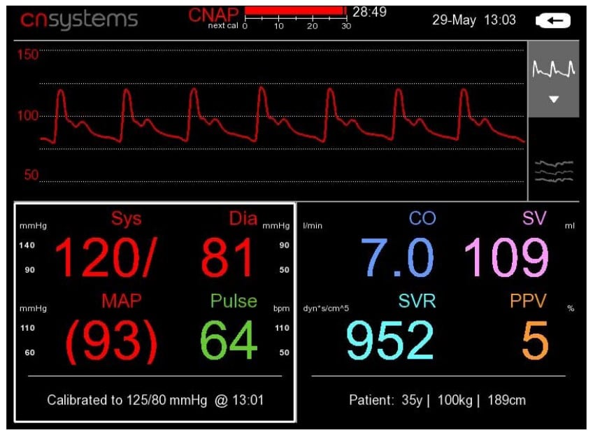 Apart from the reduced risk due to the better recognition of hypotonic episodes, the agreement between finger blood pressure measurement and intra-arterial measurement is far better than between oscillometric blood pressure measurement and intra-arterial catheter measurement. “Continuous monitoring of blood pressure is an intriguing new concept that has the potential to revolutionise patient care”(Kouz et al. 2023).