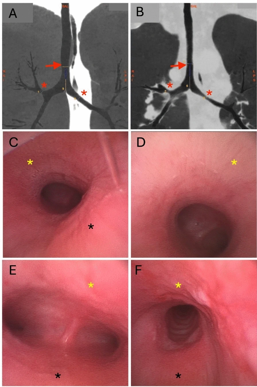 High-dose corticosteroids remain the first-line treatment, often combined with immunosuppressive agents such as cyclophosphamide in severe cases. In this patient, prompt initiation of glucocorticoids and cyclophosphamide allowed weaning from mechanical ventilation and oxygen therapy, as untreated airway inflammation may otherwise progress to irreversible airway collapse.